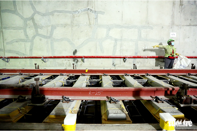 Construction workers have begun installing the final rail section of Ho Chi Minh City’s first-ever metro route.