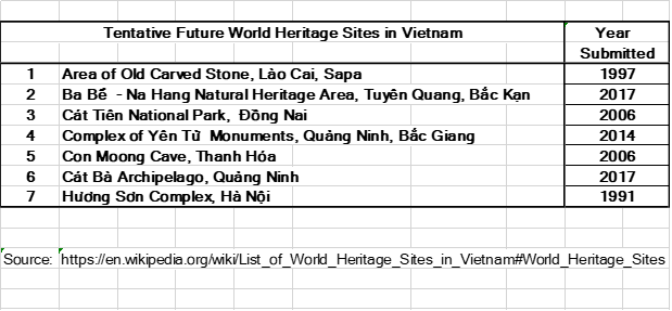 Vietnam also has a list of seven potential future World Heritage Sites which have all been submitted to UNESCO for consideration: