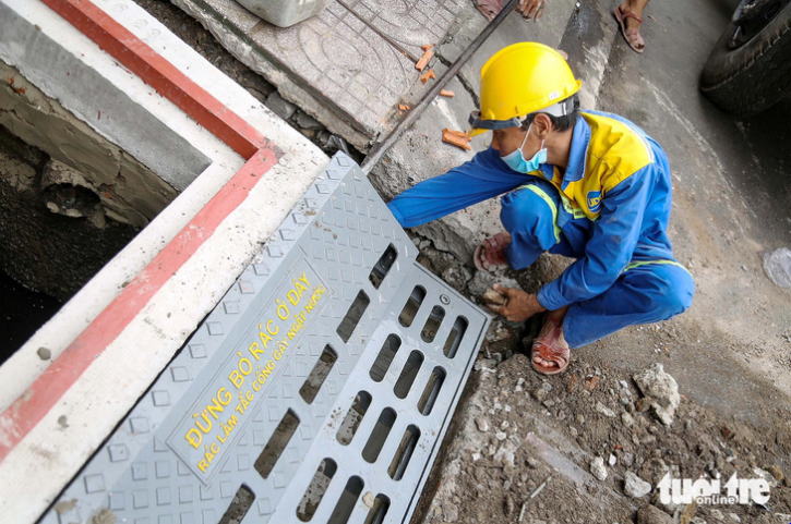 | The message 'Do not leave garbage here - Garbage clogs sewers and causes floods' is emblazoned on a manhole cover in Ho Chi Minh City. Photo: Phuong Quyen / Tuoi Tre |