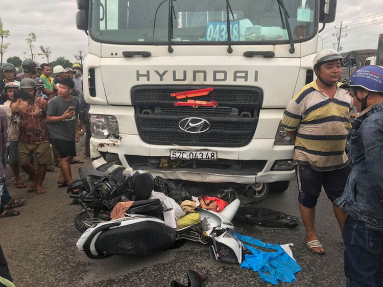 At around 3:20 pm on Wednesday, 21 motorcycles waiting at a traffic light at the Binh Nhut intersection of National Highway 1 in Long Anh’s Ben Luc District were struck by Hieu’s tractor trailer.