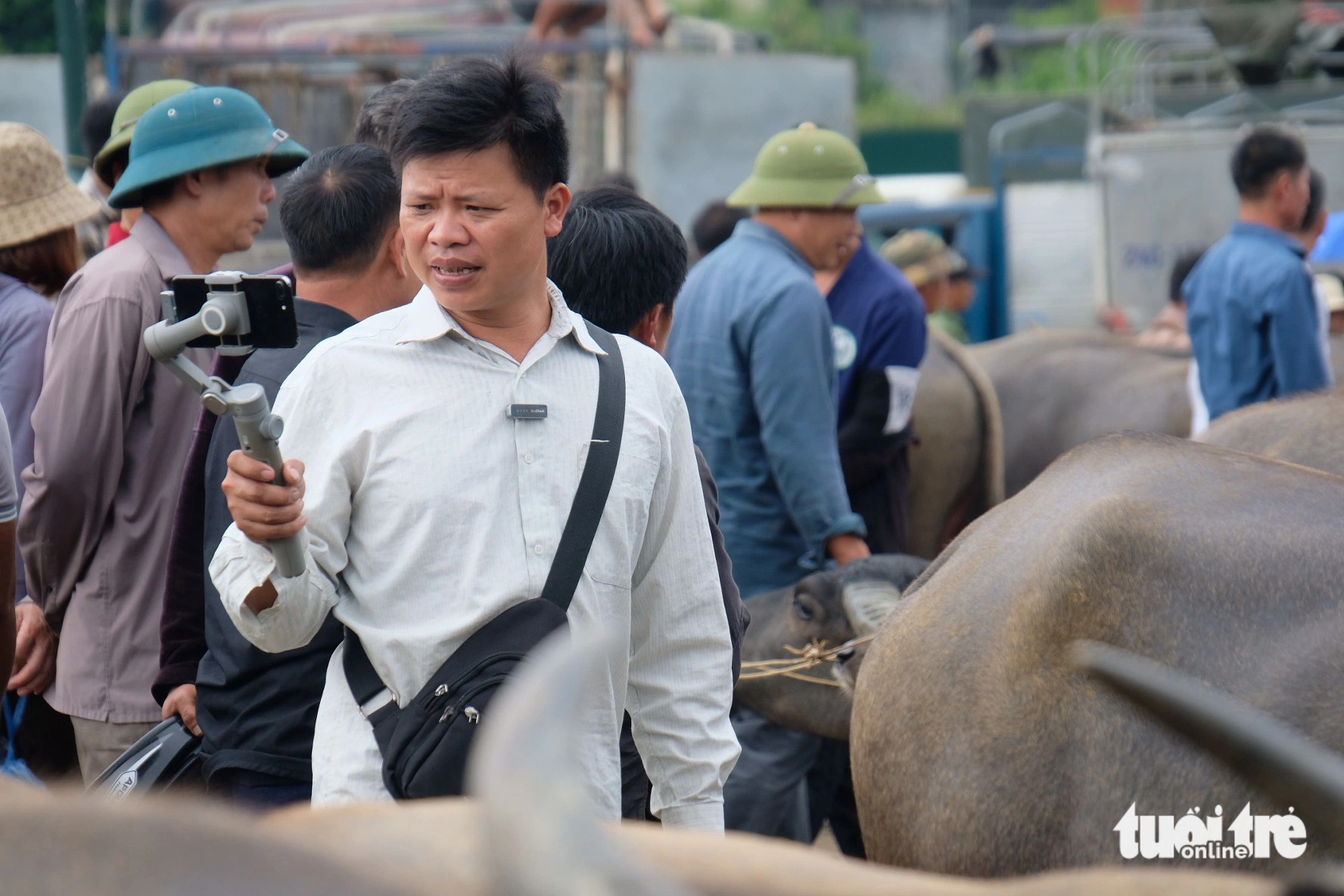 | A content creator live-streams the Bac Ha cattle market in Bac Ha Town, Lao Cai Province, northwestern Vietnam. Photo: Nguyen Hien / Tuoi Tre |