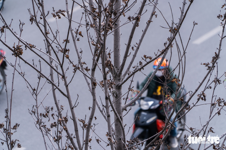 | Wilted red-leaf maple trees on the median strip of Tran Duy Hung Street in Hanoi, December 12, 2020. Photo: Pham Tuan / Tuoi Tre |