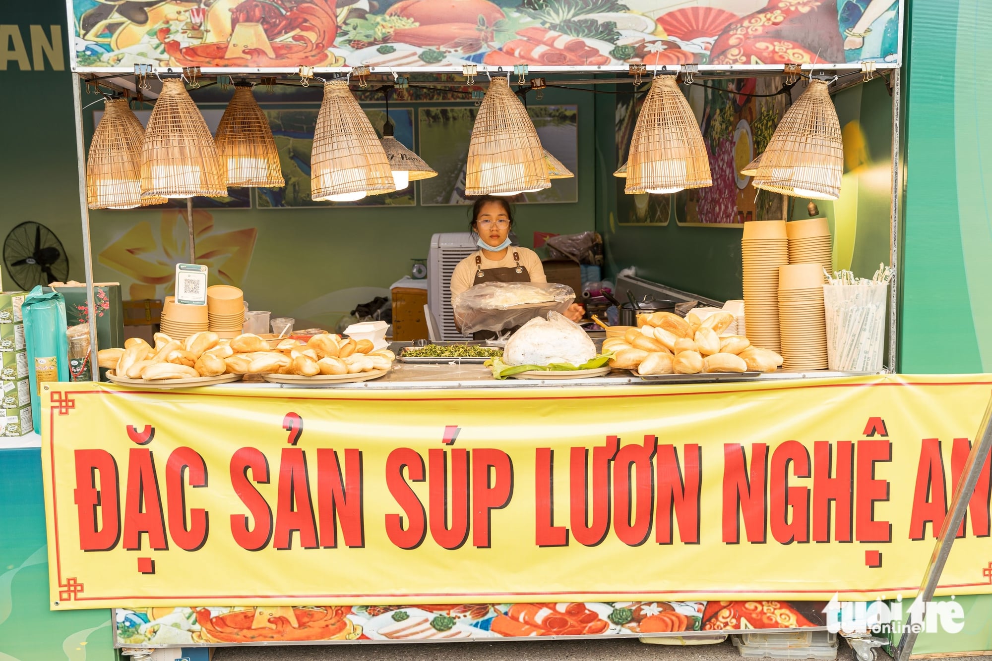 Nearby, Nghe An Province’s eel soup served with banh muot (steamed rice paper) and Ha Tinh’s banh cuon ram (Ha Tinh egg rolls) attracted crowds of nostalgic visitors from the region, who said that the fair felt like a hometown gathering.