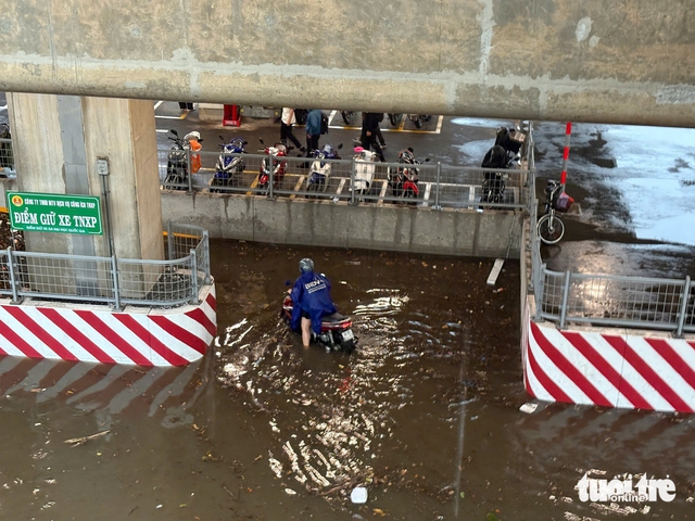 Flooding is seen outside the Vietnam National University metro station in Thu Duc City, Ho Chi Minh City, May 10, 2025. Photo: Minh Hoa / Tuoi Tre
