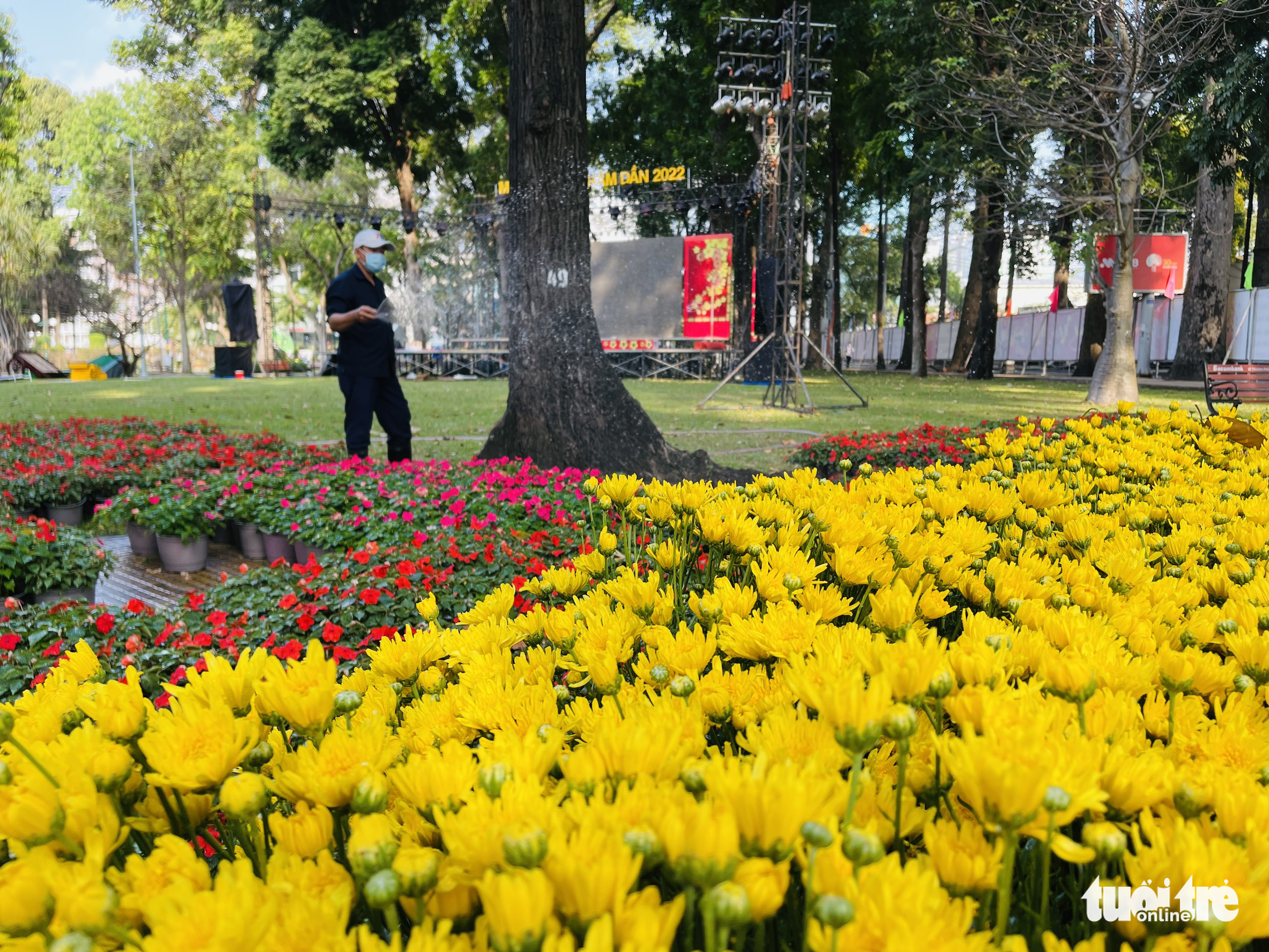 | Preparations are being made at the 2022 Tet Flower Festival at Tao Dan Park in Ho Chi Minh City, January 23, 2022. Photo: Le Phan / Tuoi Tre |