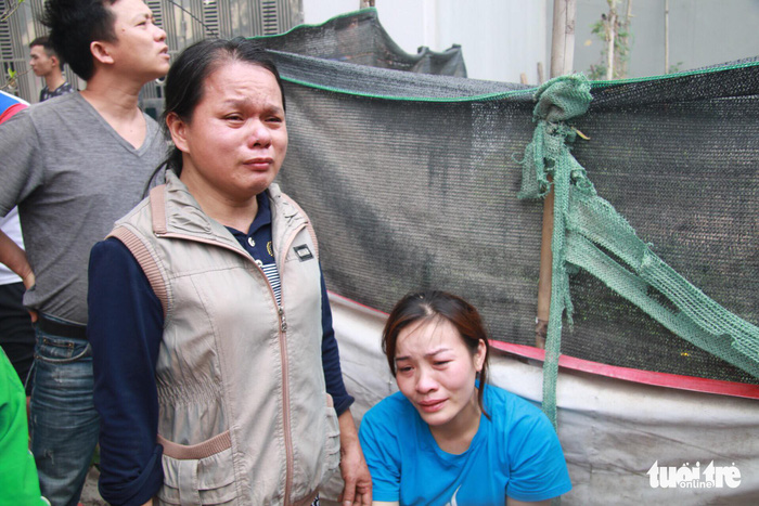 | Merchants react after seeing their products destroyed by the flames. Photo: Tuoi Tre |