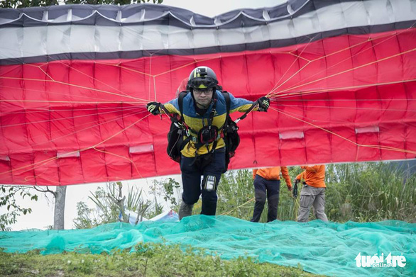 | A paraglider is about to fly in the south-central province of Khanh Hoa. Photo: Nguyen Ngoc Thanh / Tuoi Tre |