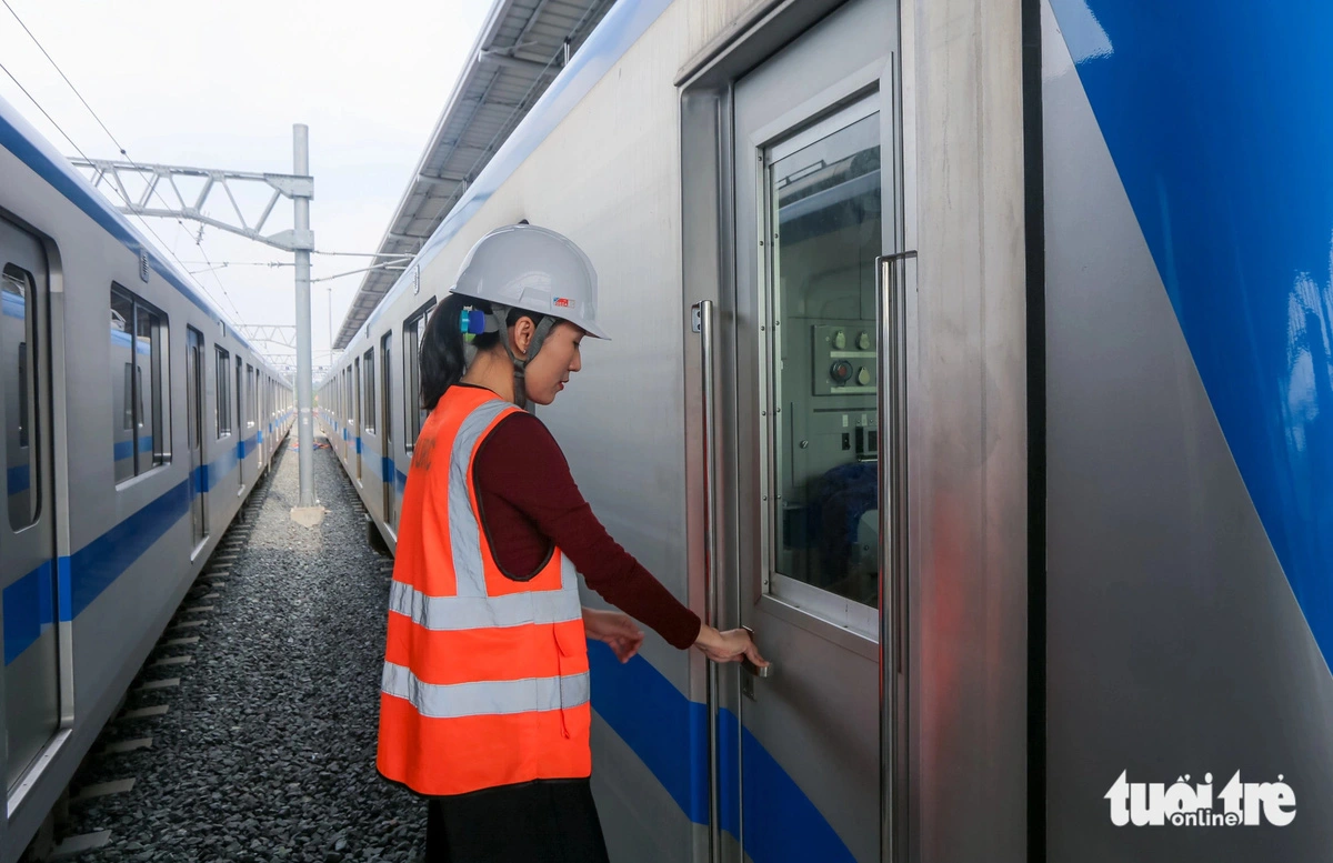 | Pham Thi Thu Thao is also head of a metro train operation team of the Ben Thanh-Suoi Tien metro line No. 1 in Ho Chi Minh City. Photo: Chau Tuan / Tuoi Tre |