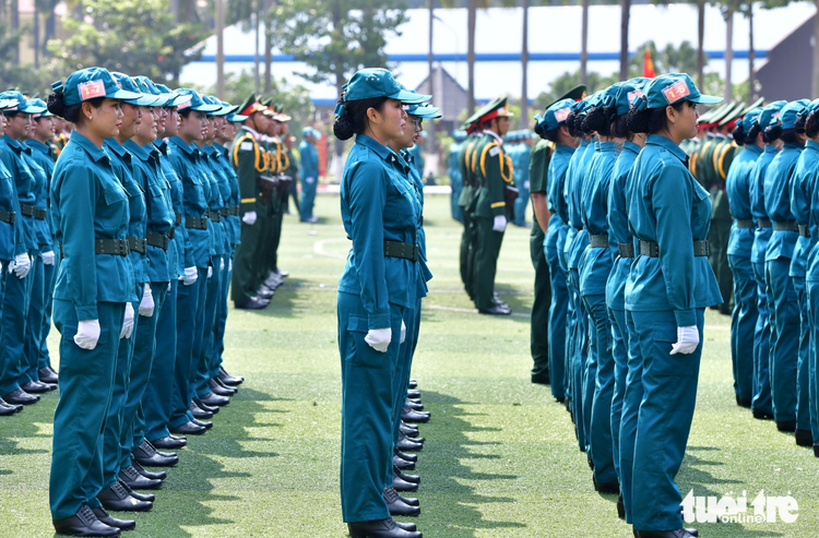| Female soldiers join a military parade rehearsal in Ho Chi Minh City. |
