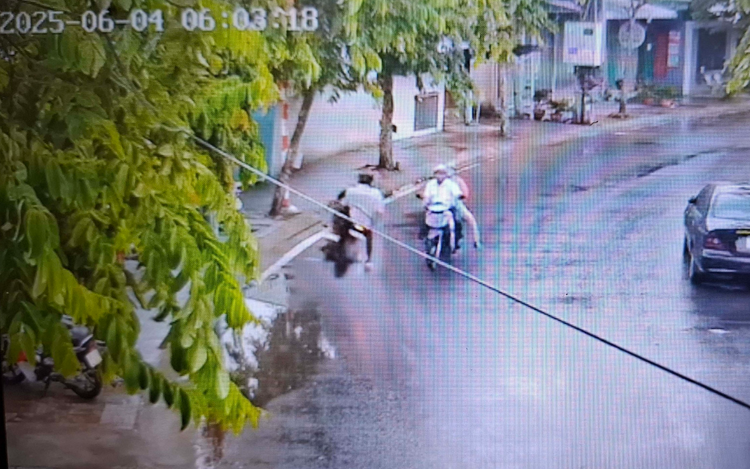 According to footage from a local security camera, the incident occurred at around 6:00 am on Wednesday near Bung Xang Lake in An Khanh Ward.