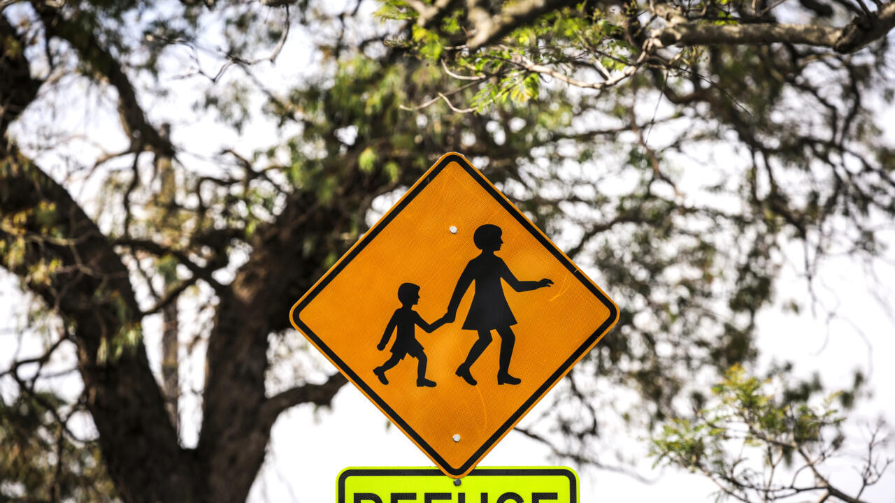 A safety sign is seen outside a primary school in Sydney on October 8, 2025 © DAVID GRAY / AFP/File