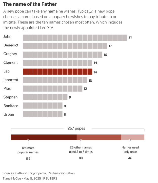 Graphic: A new pope can take any name he wishes. Typically, the new pope chooses a name based on a papacy he wishes to pay tribute to or imitate. These are the ten most popular pope names.