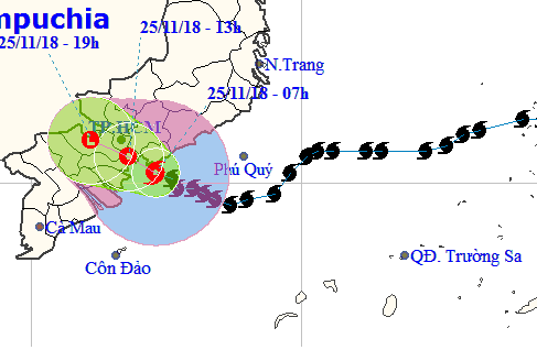 | A map detailing the route of storm Usagi on November 25, 2018. Photo: National Center for Hydro-meteorological Forecasting |