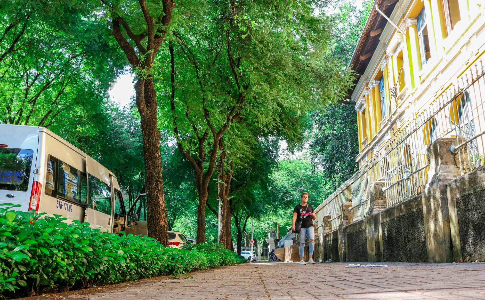 | A foreigner walks under tamarinds on a street in Ho Chi Minh City, Vietnam. Photo: Tuoi Tre |