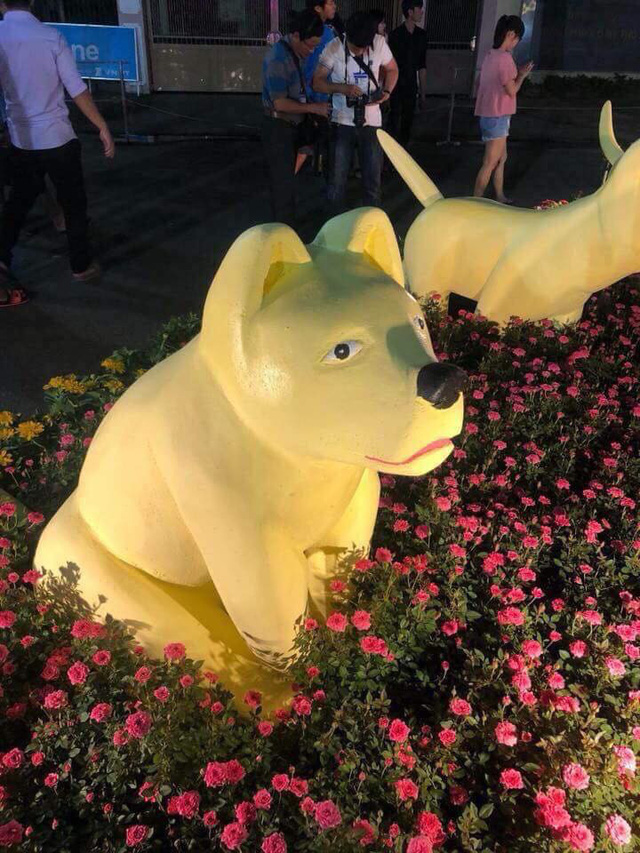 The statue of what appears to be a three-member family of dogs erected at a flower street in Vietnam’s Mekong Delta has left visitors confused and sparked instant Internet meme, as none of them really looks like a canine.