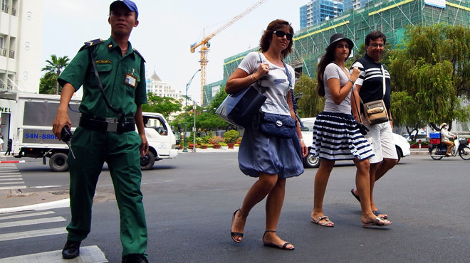 “We are tasked with protecting foreign tourists when they are disturbed by street vendors or overcharged by xe om [motorbike taxi] or taxi drivers,” Nguyen Thanh Tuyen, head of the team, told Tuoi Tre News on the phone.