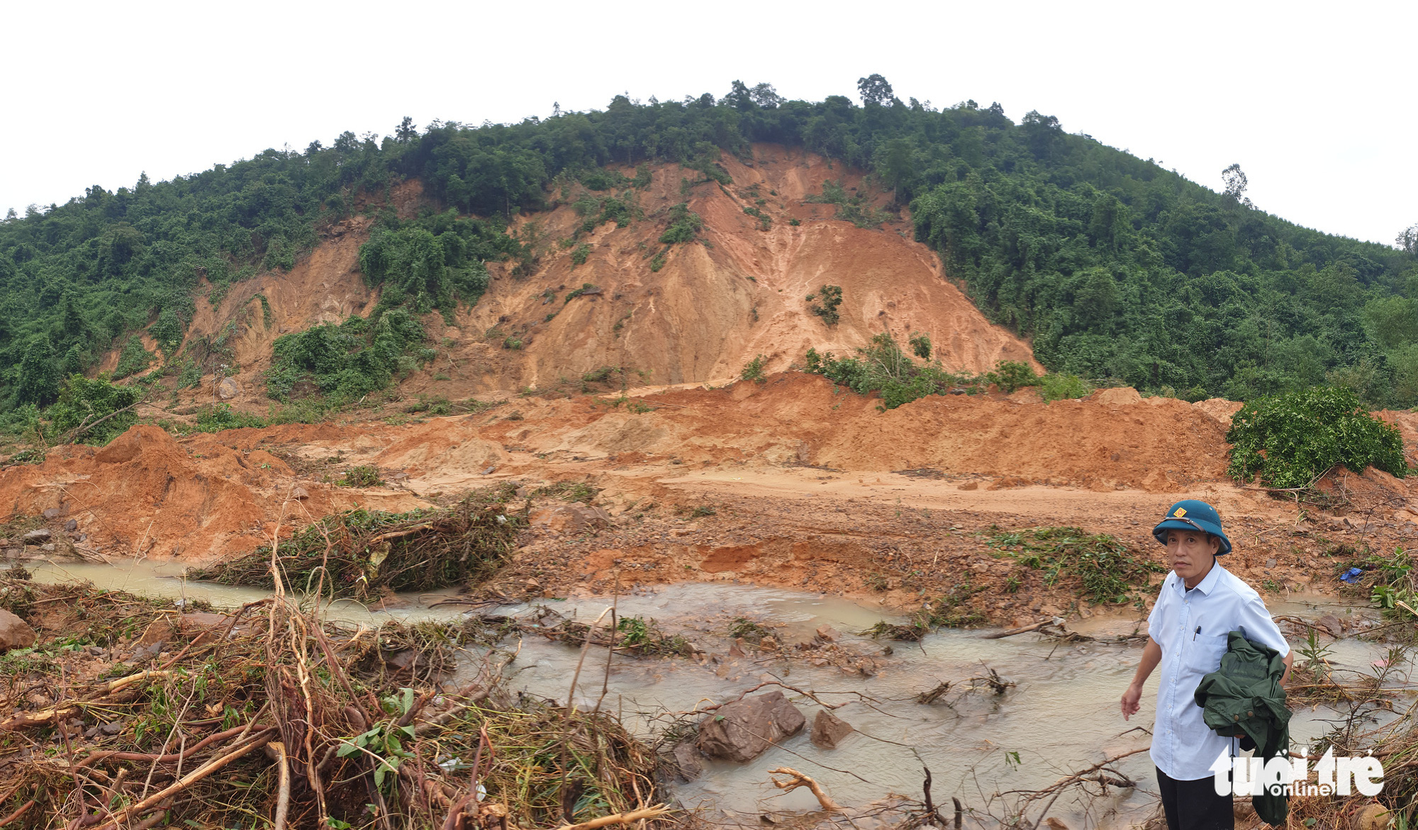 | A serious landslide buries an irrigation dam in Tuyen Hoa District, Quang Binh Province, Vietnam, October 2020. Photo: Tuoi Tre |