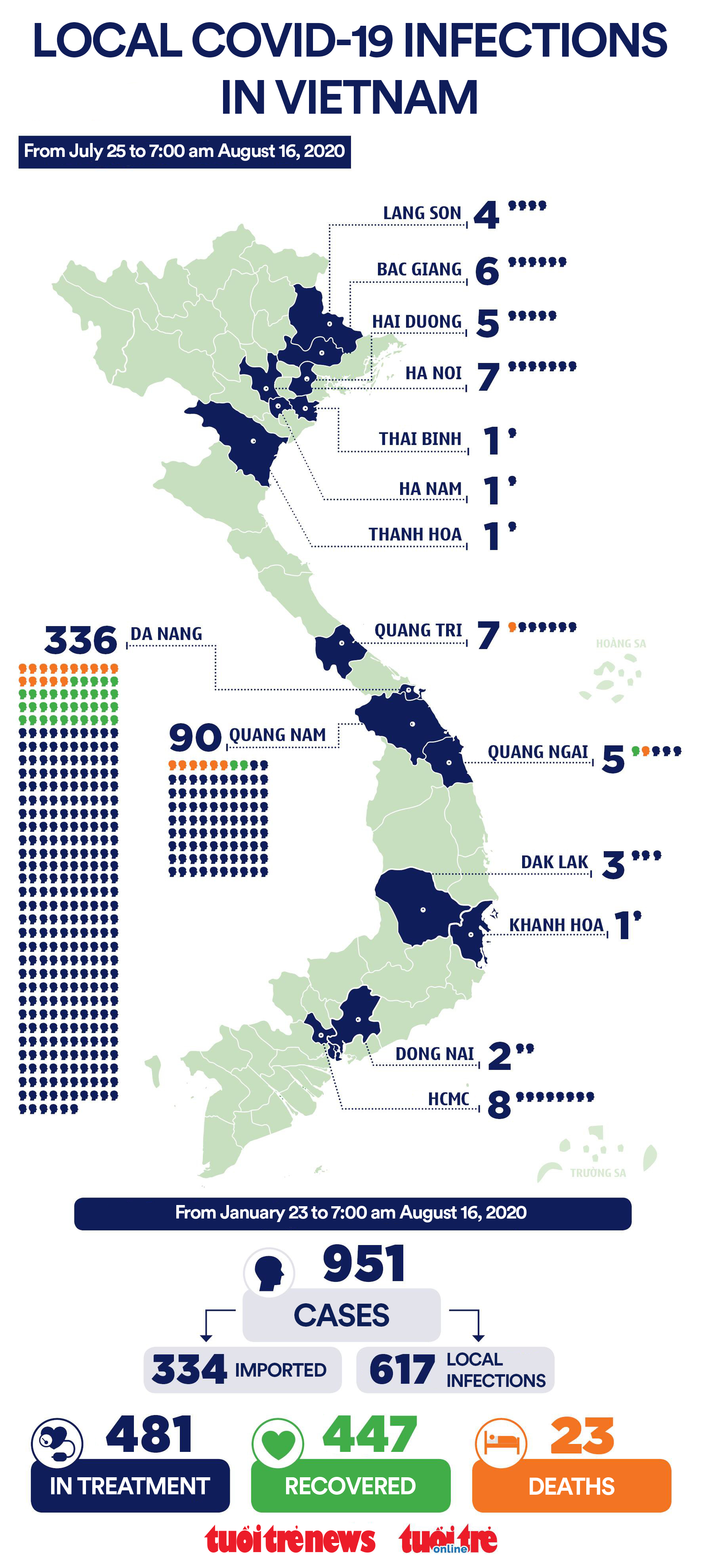 Vietnam’s COVID-19 tally has reached 951, with 447 having recovered and 24 fatalities as of Sunday morning.
