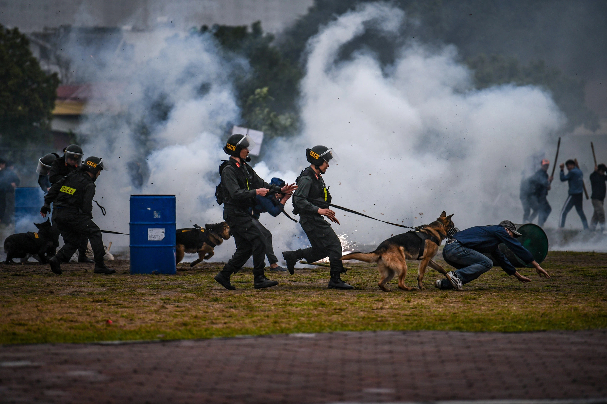 | Senior Lieutenant Colonel Nguyen Van Nam, commander of Vietnam Police Peacekeeping Unit No. 1, recites the oath and pledge at its inauguration in Hanoi, January 11, 2024. Photo: Tuoi Tre |