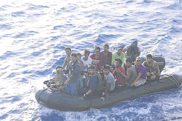 | Filipino fishermen on a ship that sank off Vietnam’s Truong Sa (Spratly) archipelago on June 9 after being hit by a Chinese vessel are brought to safety. Photo: Philippine Navy |