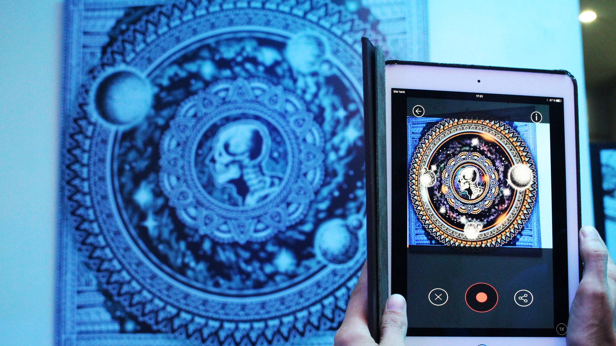 | People can enjoy the artworks via an application called EyeJack on their smartphones. |